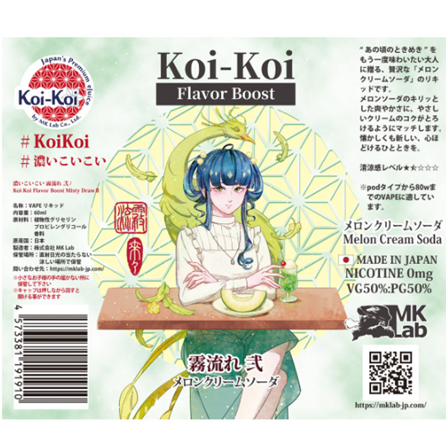 Koi-Koi - 霧流れ 弐 メロンクリームソーダ 60ml【VAPE・電子タバコ・電子シーシャ用リキッド】