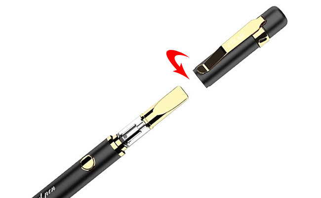 高級感あるボールペン風のデザインで、中を開けると510カートリッジが接続できるようになっています。